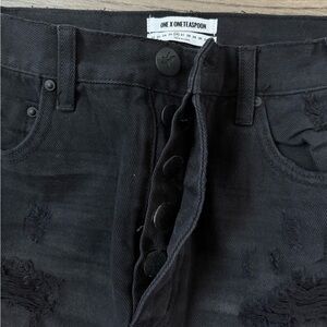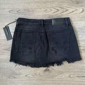 One Teaspoon Junkyard Distressed Mini Jean Skirt Black Size 26 Raw Hem NWT