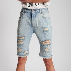 One Teaspoon Kansas Cut Off Trucker Mid Waist Long Length Shorts
