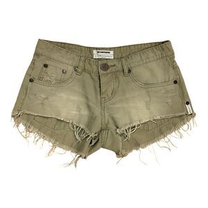 One Teaspoon Khaki Twisted Cuff Button Fly Denim Shorts Size 25