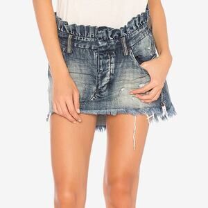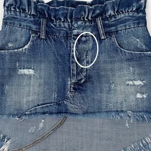 One Teaspoon Le Cult Mini Skirt Size 26 Blue Denim Distressed Paperbag