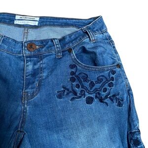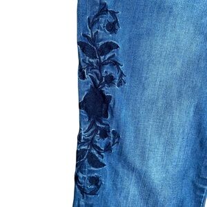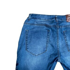 One Teaspoon skinny jeans, Lola Freebirds II denim, Americano wash jeans, embroidered skinny jeans, rose floral denim, raw hem ankle jeans, low rise festival jeans, edgy rocker denim, boho embroidered jeans, vintage wash skinny jeans, statement denim pants, casual street style jeans, cropped skinny denim, One Teaspoon size 28, Freebirds embroidered jeans, trendy raw hem jeans, grunge floral jeans, cool girl denim, fashion-forward skinny jeans, One Teaspoon signature denim