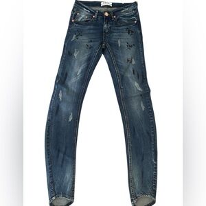 Low Waisted, Short Rise, Fitted bowed Leg, and a curved hem!