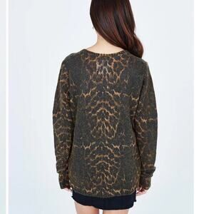 The Big Cat Knit is the perfect relaxed sweater designed to fit loosely cut from a leopard print knit blend, V- neck
