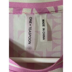 One Teaspoon Mesh Top XSMALL(Runs Big) Pink White Logo Sheer Long Sleeve