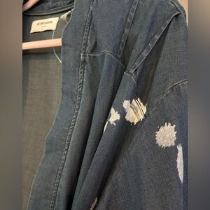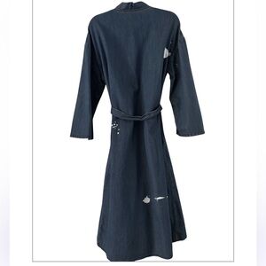 Bleach dot design,Like get Jean Chambray pleated at shoulder, pockets and belted! One of a kind piece! So versatile, wear as a Robe, Dress, Kimono or coverup! Oversized