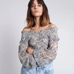 🌴 One Teaspoon NWT Zebra Bardot Cross Over Top MEDIUM