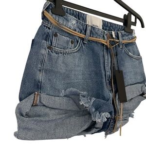 One Teaspoon Pacifica WA Bandits Blue Jean Shorts with Tan Belt Style 22964 NWT
