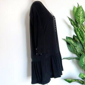 One Teaspoon Rango Black Lyocell Scoop Neck Ruffle Hem Mini Dress Size Medium M