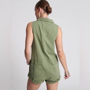 One Teaspoon SUPER KHAKI MINI BRAXTON OVERALLS Romper XL playsuit