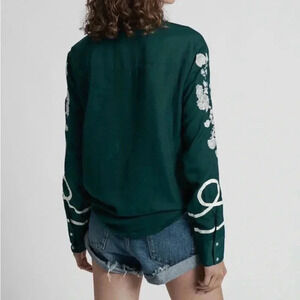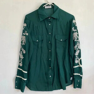One Teaspoon San Cerena Shirt Green Button Down Embroidered Western Floral XS