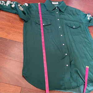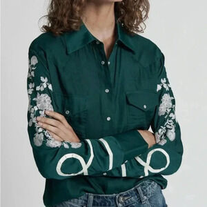 One Teaspoon San Cerena Shirt Green Button Down Embroidered Western Floral