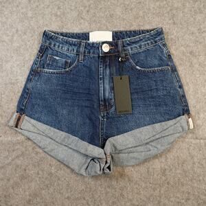 One Teaspoon Shorts Womens 24 NWT Dakota Bandits High Waist Denim Dark Wash Cuff
