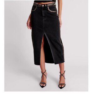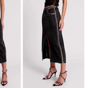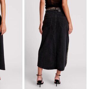 One Teaspoon Studded Denim Maxi Skirt Mid Waist Center Front Split 100% Cotton