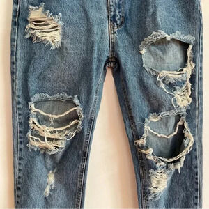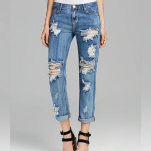 One Teaspoon Super Baggies Blue Distressed Jeans Boho Relaxed Fit Pants Womens