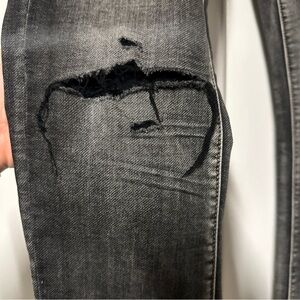 One Teaspoon Super Button fly Dupers low waisted slim leg cropped jeans distressed Black Hart Grey Size 28