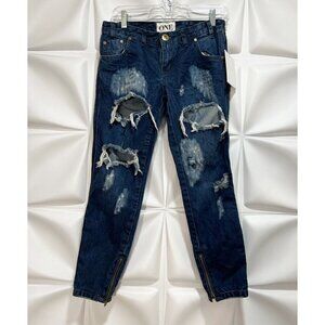 One Teaspoon Sz 26 Trashed Freebirds Crop Denim Jeans Skinny Dark Blue Women NWT