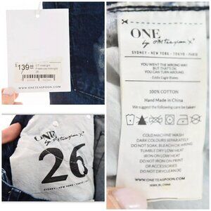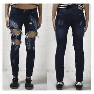 One Teaspoon Sz 26 Trashed Freebirds Crop Denim Jeans Skinny Dark Blue Women NWT