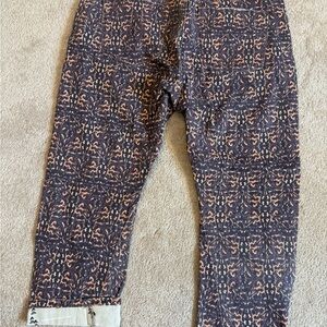 Chic cropped pants with a bold pattern. Perfect for casual outings. Comfortable and stylish.