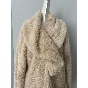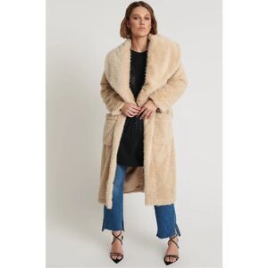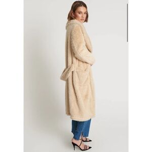 NWT One Teaspoon The Wonderland Wide Collar Faux Fur Long Line Coat Cream Medium $278