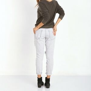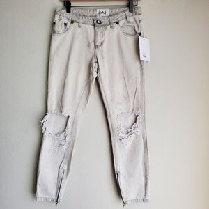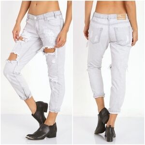 Heavy distressing on both legs, a low waist, and ankle zips complete these perfectly disheveled jeans.