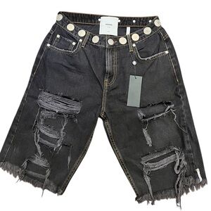 One Teaspoon Truckers Mid Waist Long-Length Relaxed Denim Shorts - Black, Size 26 AU/ US 4 NWT