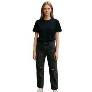 The TRUCKERS. Our perfect relaxed straight leg jeans. Mid waist and relaxed. Very easy to wear and perfect for all body types. 5 pocket classic details. Now super messed up, ripped & trashed with extra distressing on the knees.