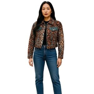One Teaspoon Voodoo Johnny leopard print Jean Jacket Casual Style Size 8 AU/4 US