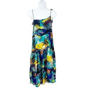 One Teaspoon Womens Boho Beachy Tropical Hawaiian Sleeveless Dress Size M Blue