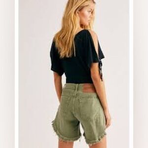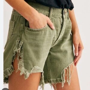 One Teaspoon X Free People Frankies Distressed Cutoff Denim Jean Shorts Khaki