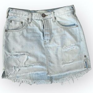 One Teaspoon distressed frayed hem mini denim jean skirt