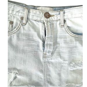 One Teaspoon womens distressed frayed hem mini denim jean skirt size 28 festival