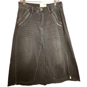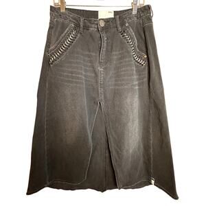 One Teaspoon x Free People Chain Maxi Slit Denim Grunge Whimsigoth Skirt Sz 27