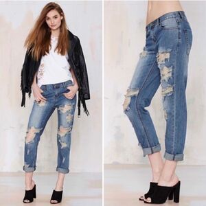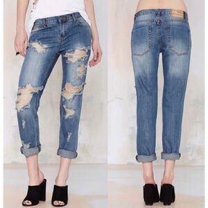 No diggity, we gotta bag it up. The Awesome Baggies have a slouchy fit, five-pocket design, and front shredding embellishment, and come in the vintage-inspired wash. Wear them with slides and a bustier, or a sweater and platforms. More bag, more swag. By One Teaspoon.