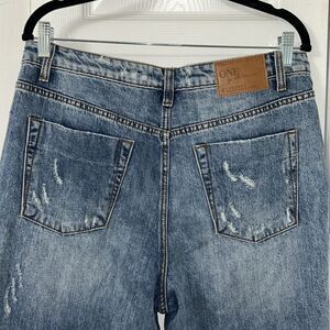 One Teaspoon Blue Mom Distressed Jeans,Zipper/Button Closure,Approx measurement Rise 11.5", Inseam 27.5", Length 39.5", Waist 32".NWT