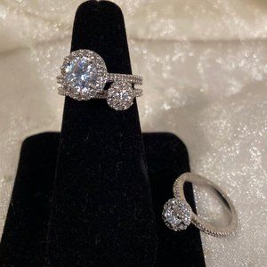 clear crystals. Silver plating. Size 7-1/4. The large ring has 1 cart CZ. The middle size is 1/2