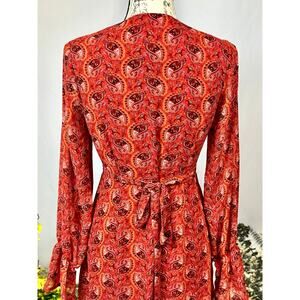 One Way Wrap Around Paisley Mini Dress Long Sleeves Red/Orange 12