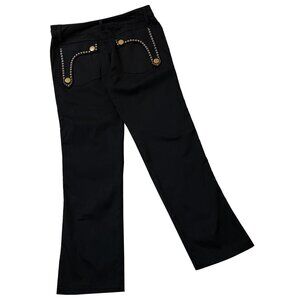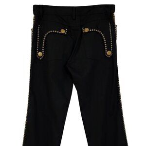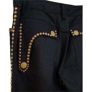 One Way to Rock designer Men's black pants, embellished with hand placed Antique finish brass nail-heads, large snap buttons and fancy back pocket styles, ready to Rock-on!