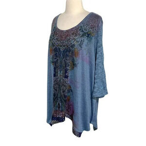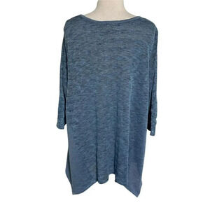 One World 2X blue boho asymmetrical knit 3/4 sleeve top