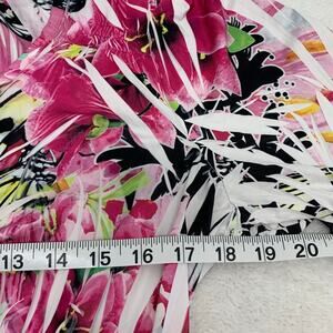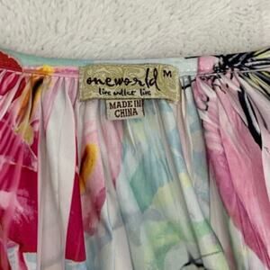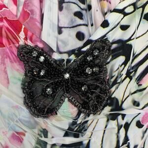 One World Blouse Womens Medium Flowers Butterflies Rhinestones Beads Stretch
