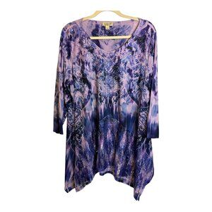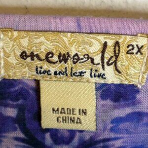 One World Blouse Women's Size 2X Embellished Lace Tunic Office Purple