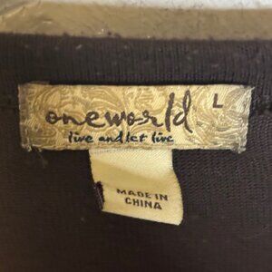 One World Blouse Women's Size Large Cardigan cascade Open Front Lace Brown