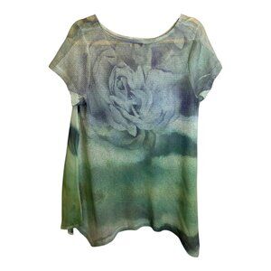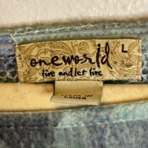 One World Blouse Women's Size Large Floral Lightweight Knit Sheer Blue