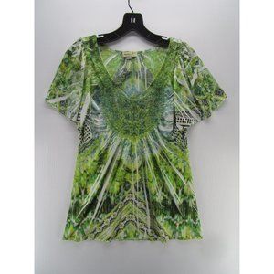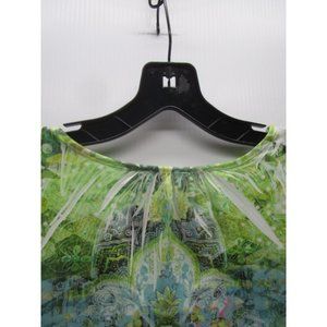 One World Blouse XS Pullover Top Floral Beaded Crochet Pleated Boho