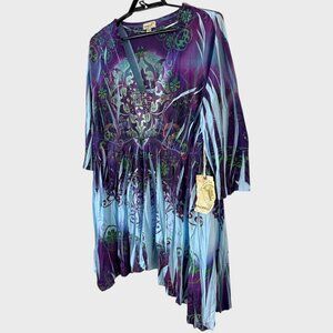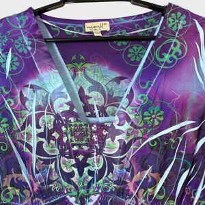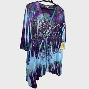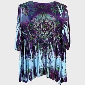 One World Boho Mandala Printed 3/4 Sleeve Blouse Purple & Blue Women's 2X New