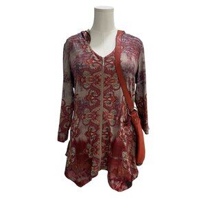 One World Boho Tunic Hoodie Top Size Large With Bueno Red Crossbody Bag Bundle