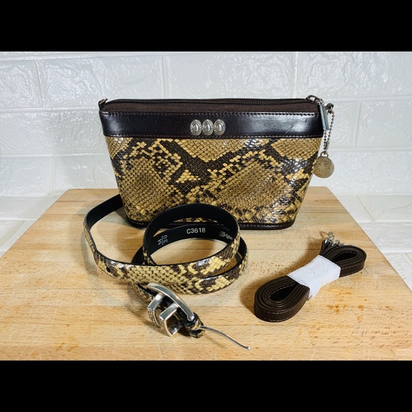 One World Brighton snakeskin wristlet with matching belt and strap for the wristlet.