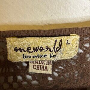 One World Cardigan Women's Size Large Lace Back Open Front Brown