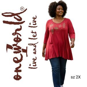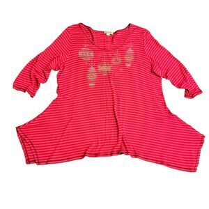 One World Christmas Ornaments Sparkly Striped Shark Bite Stretchy Blouse Top sz 2X in EXCELLENT like NEW Condition! Soft and stretchy sexy Hankerchief sharkbite hem!