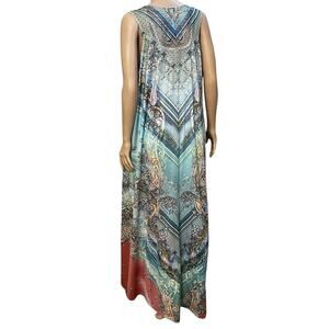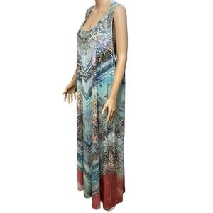 One World Colorful Boho Maxi Dress 2X Butterfly Lace Back Sublimation Print