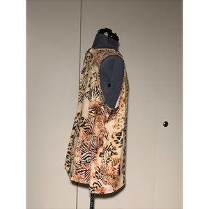 One World Colorful Sleeveless Tank Top Leopard Multi Print + Necklace 3X NWOT.